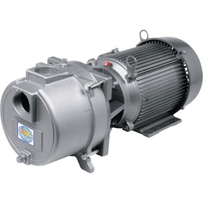 This industrial duty IPT sprinkler/booster pump features a 3-phase, 208-230/460V motor and cast iron construction with stainless steel impeller. Flow (GPH): 7,200, Volts: 208-230/460, HP: 5, Max. Total Head (ft.): 160, Max. Suction Lift (ft.): 20, Max. PSI: 70, Suction Port (in.): 2, Discharge Port (in.): 2, Self-Priming: Yes